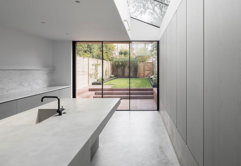 Cast in-situ concrete is a popular choice for contemporary interiors. Its flexibility allows for a continuous surface for benchtops, sinks, draining channels, backsplashes and wet walls. A variety of pigments and textures available. Concrete can also be finished in a microcement render.